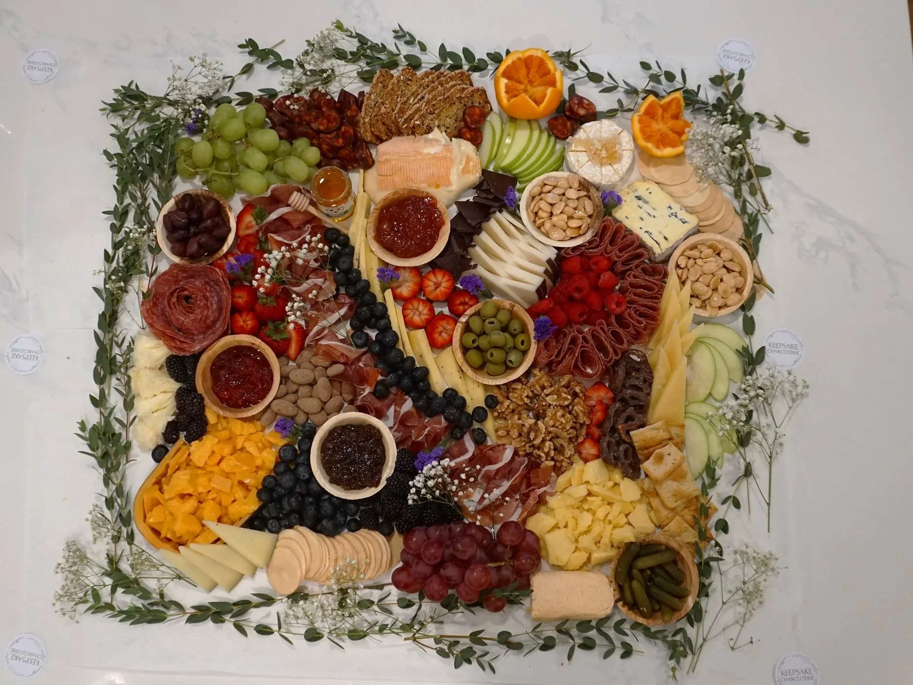 Petite Party boards are thoughtfully arranged, shareable charcuterie spreads designed for group enjoyment. Perfectly sized for 4–8 guests, each board features an abundant selection of artisan cheeses, cured meats, and seasonal accompaniments. Ideal for family-style dining, showers, or intimate celebrations, Petite Party boards strike the balance between elegance and generosity, creating a centerpiece that invites guests to gather and graze together.